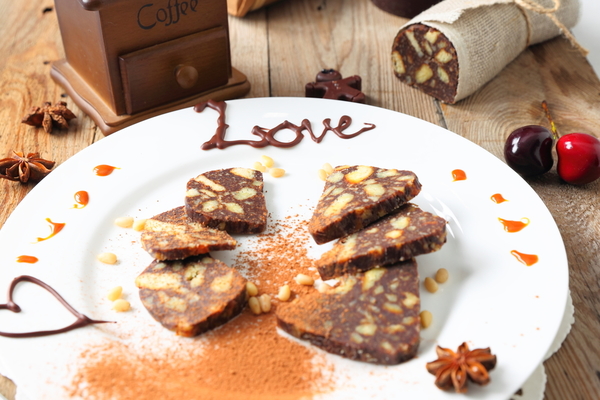 Как приготовить шоколадную колбаску с орехами и печеньем