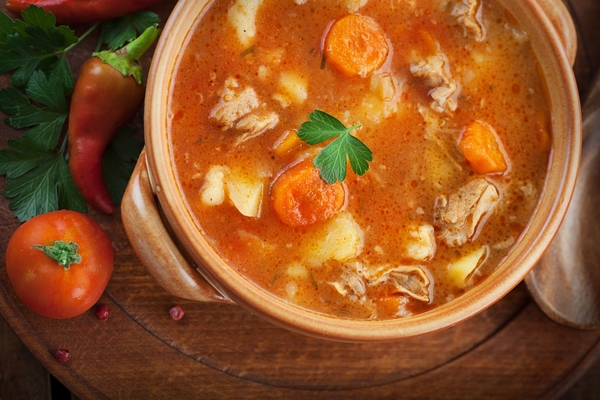 Пошаговый видео рецепт согревающего острого супа из телячьих ножек, перца чили и кукурузной муки.