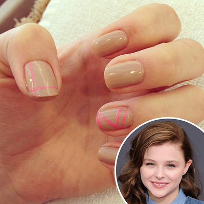 Хлоя Морец решила соединить в своем маникюре несколько ярких трендов этого лета: нюдовый цвет в сочетании с неоном и геометрические линии. Кэти Перри тоже не отказалась от необычного рисунка – певица поразила гостей церемонии веселыми мордашками смурфиков (мультипликационные персонажи).
