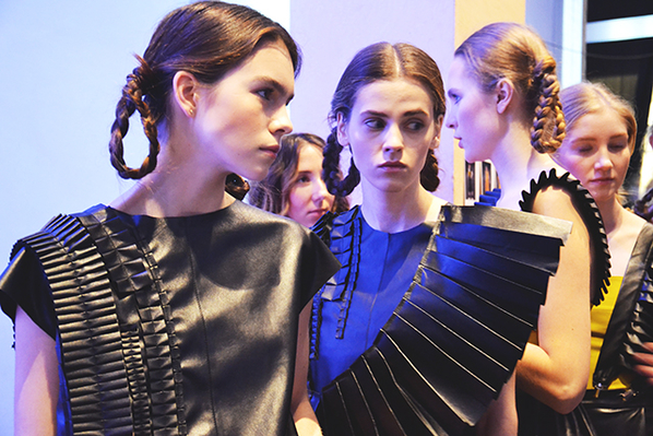 Последние наставления стилистов, волнение моделей и дизайнеров, яркий макияж, выделяющие детали нарядов — все это в нашем эксклюзивном фотоотчете.