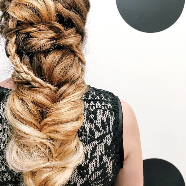 Куда же без плетений? Правильно, никуда! А праздничная ночь не исключение, ведь такая укладка смотрится эффектно на волосах любой длины и, в зависимости от места празднования, дополнит твой casual look в кругу семьи или вечерний образ для шумной вечеринки с реками шампанского и горами мандарин.