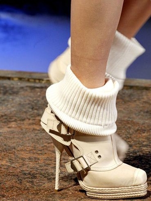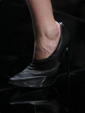 Новая дизайнерская тенденция - открыть у ботильонов пятку. Смотрится весьма оригинально. А при том что все модели исключительно на высоких каблуках, опасности промокнуть нет, как и в первом случае.