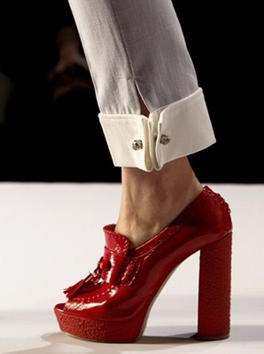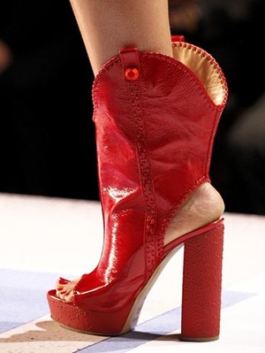 И наконец, хит сезона - ботильоны ярких цветов! Красные, зеленые, розовые, желтые - неважно. Главное, чтобы они стали самым ярким пятном вашего образа. При этом учтите еще одну тенденцию - моду на платформу, геометрические формы и необычные детали.