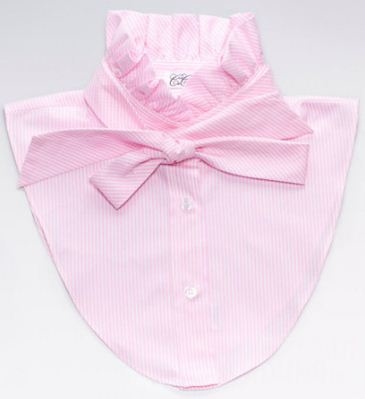 Однажды американка Джейми Турки надела свитер поверх любимой рубашки и почувствовала себя неудобно. Тогда она взяла ножницы и отрезала от рубашки большую часть, оставив воротничок с манишкой нетронутыми. Получившийся предмет гардероба, названный топпингом, оценили друзья Джейми, и она решила создать собственную марку CeCe Toppings. Сейчас бренд Турки выпускает манишки с воротничками с острыми углами, с круглыми воротничками в стиле Питера Пена и с воротничками-оборками со съемными бантами. У CeCe Toppings они либо однотонные, к примеру, белые, розовые или голубые, либо с принтом – леопардовым, клетчатым или в горох.