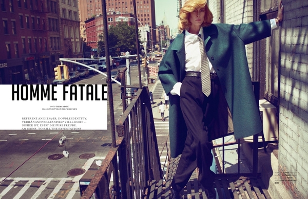 В сезоне осень-зима 2011-2012 образы а-ля гарсон актуальны, как никогда. Дизайнеры предложили носить не просто джинсы бойфренда, но и примерить мужские брюки с поясом, белые сорочки с галстуком, пиджак и даже подтяжки для носков. Как носить все эти вещи показывает модель Наташа Войнова в фотосессии под названием Homme fatale для журнала Tush Magazine (выпуск 25).