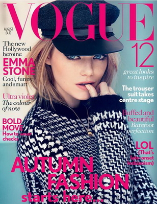 Звезда фильма Новый Человек-паук, актриса Эмма Стоун, стала главной героиней августовского номера Vogue UK. Она снялась в фотосессии и украсила обложку журнала.