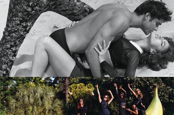 В яркой съемке под руководством фотографа Брюса Вебера снялись супермодели Ирина Шейк, Алессандра Амбросио и Киара Кабукуру, звезда реалити-шоу Биг Энг, которая в 2012 году попала в рейтинг самых безвкусно одетых звезд. Компанию девушкам составили танцор Лила Бака и сенсация youtube, танцующая Собака Керри.