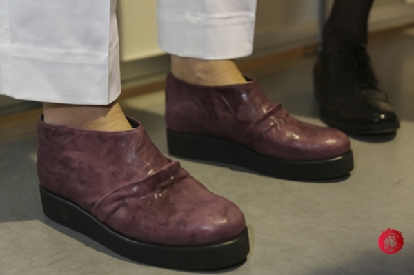 Образы в коллекции PRZHONSKAYA дополняла обувь, разработанная совместно с дизайнером обуви Али Саулиди. Ботильоны, сандалии, открытые и закрытые ботинки на плоской подошке выполнены из натуральной кожи в гармоничных с коллекцией цветах – черном, лиловом, сером, бордо.