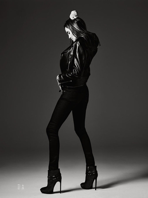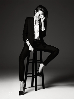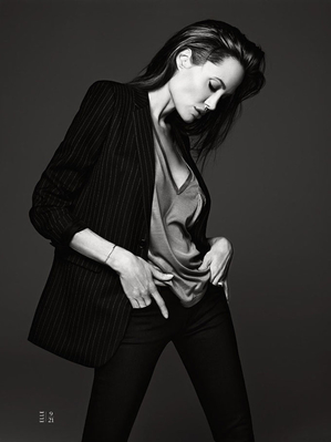 В фотосессии, автором которой стал креативный директор бренда Saint Laurent Эди Слиман, Анджелина Джоли не стала примерять новые образы. Она выбрала наряды своего любимого черного цвета – смокинг, узкие брюки и кожаная куртка, мини-юбка и блуза.