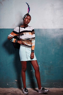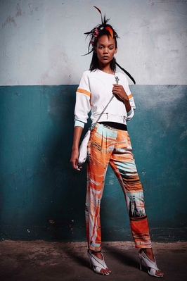 Красной нитью сквозь всю коллекцию проходит любовь Стефани к различным культурам и народностям: африканские мотивы отчетливо видны в аксессуарах и формах одежды, яркие принты стали отсылкой к ямайскому национальному костюму, а цветы сакуры в волосах моделей напомнили нам о загадочной Японии.