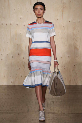 Главные акценты весенней коллекции Paul Smith были сосредоточены на элементах делового стиля. Это отобразилось как на форме одежды: преимущественно это платья-рубашки, пиджаки, брюки и костюмы, так и на принтах: королевой коллекции стала полоска. Цветовая гамма была также подчинена главной идее. Палитра из бежевых, серых, черных, белых и синих цветов была разбавлена красными и голубыми полосками.