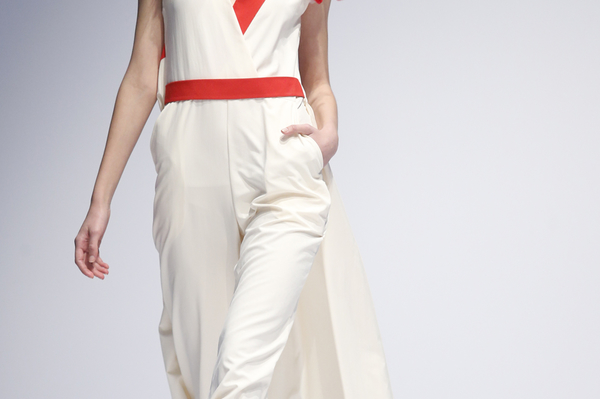 Вся коллекция является одой натуральных природных оттенков, среди которых цвет слоновой кости, бежевый, красный, бирюзовый. Необычной и концептуальной частью коллекции станут комбинезоны, нижняя часть которых выполнена в виде очень широких юбок-брюк, невероятно подчеркивающих женственность силуэта.