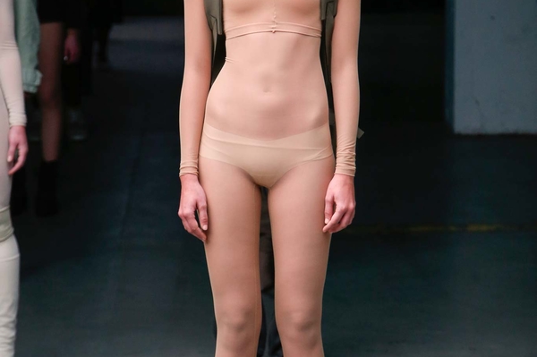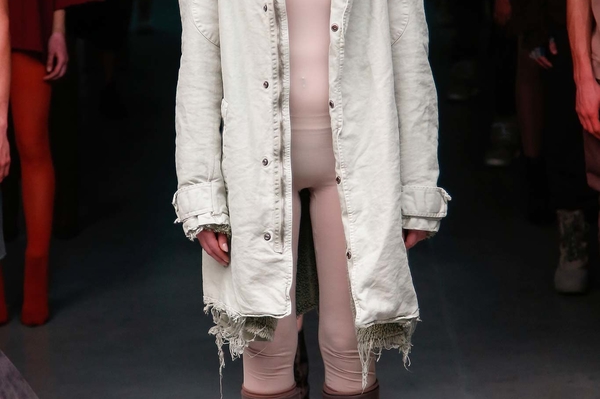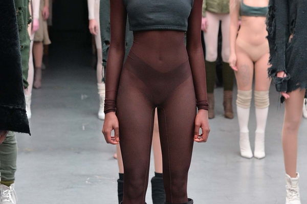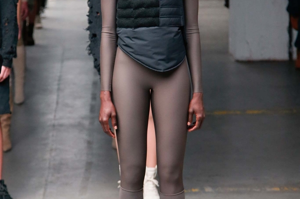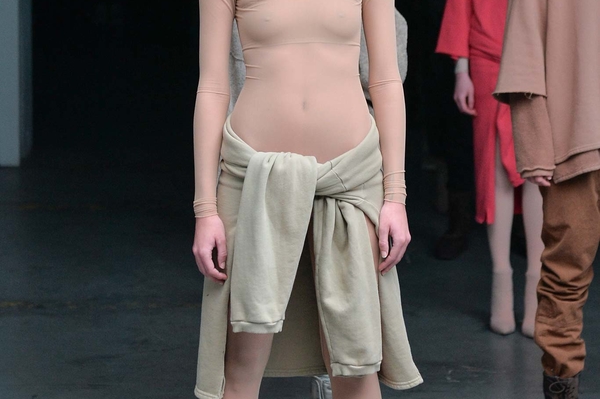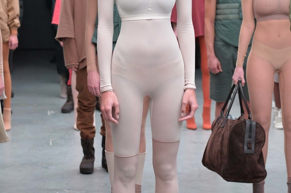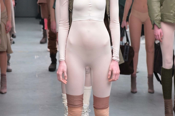 Коллекция для Adidas Originals состояла из объемных бомберов, телесных боди из капрона, дырявых свитеров, свободных спортивных штанов, коротких топов, пальто в стиле милитари и нюдовых свитшотов. Канье хорошо проработал детали: аксессуары в виде шапочек под парик, ботинок-чулок, рюкзаков и жокейских кепок заслуживают особого внимания.