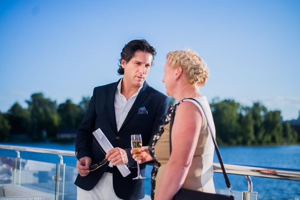 Не обошлось и без ответных подарков. Три девушки выиграли сертификаты на платья от Голды а в конце вечера всех гостей угостили праздничным тортом. Ведущая 5 канала Габриэлла Массанга торт есть не стала, видимо, чтобы сберечь фигуру, а вот пластический хирург Дмитрий Слоссер признался, что съел бы кусочек, – да не успел.
