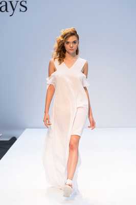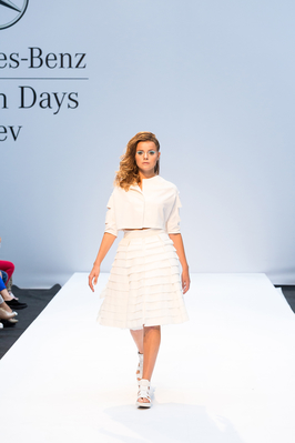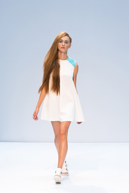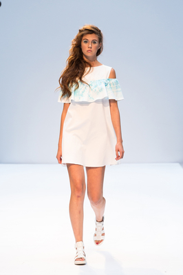 Главным вдохновением для дизайнера Ольги Литвинчук стало небо, которое символизирует легкость. Белый цвет, как доминирующий в коллекции, асимметрия, имитация облаков – все это было призвано раскрыть идею автора.