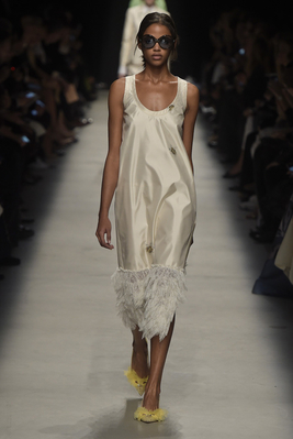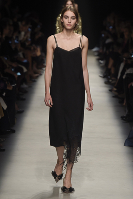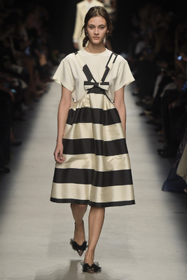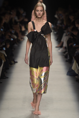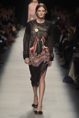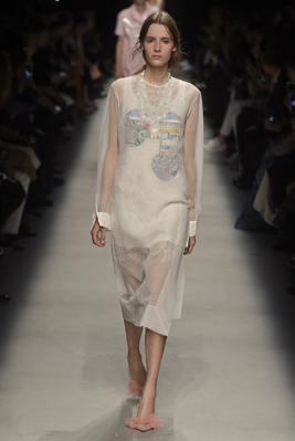 В представленной коллекции Алессандро Дель Аква гармонично комбинирует кружевные юбки-миди с рубашками в сюрреалистическом стиле, трикотажные однотонные футболки с атласной тканью, а глянцевую кожу с нежным шифоном. Особенного шика нарядам добавили воздушные банты, блестящая парча и шелк, при стечении которых на свет рождается трогательный образ современной парижанки.
