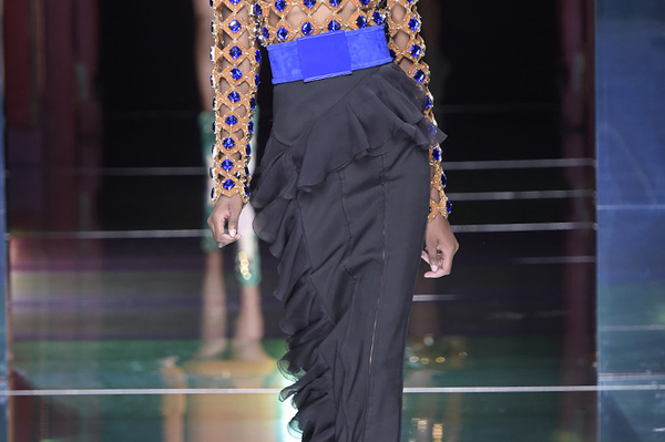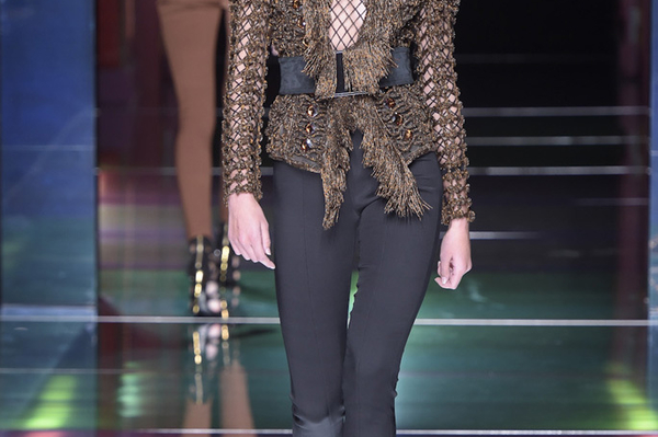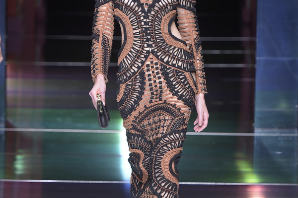 Новая линейка Оливье Рустена выполнена исключительно в теплой песочной цветовой гамме. Дерзкая сексуальность образов, геометричность форм и разнообразность орнаментов в египетском стиле – главные отличия представленной коллекции Balmain. Также дизайнер уделил не мало внимания аксессуарам, дополнив каждый look массивными серьгами-шандельерами и широкими золотистыми чокерами.