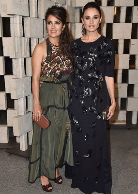 На светском ужине знаменитые гости не только наслаждались произведениями искусства, но и демонстрировали свои роскошные наряды. Так главная красотка вечера Джулия Роберст выбрала пестрое мини-платье из осенне-зимней коллекции итальянского дизайнера Bottega Veneta. А вот Сальма Хайек продемонстрировала более сдержанный look. Для светского выхода звезда выбрала платье светло-болотного оттенка сексуальной длины миди.