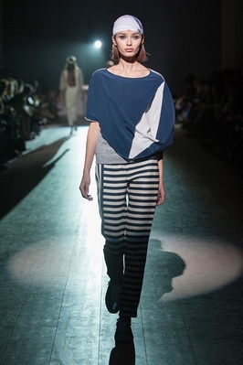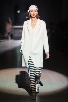 Так стихию воды дизайнер представила с помощью широких полосок глубоких синих оттенков. Светло-серая цветовая гамма и плотные фактуры стали воплощением стихии земли. Силу огня дизайнер передала с помощью горчичных оттенков и абстрактных геометрических принтов. А воздух в Елены Голец ассоциируется с молочными, бежевыми оттенками и свободными силуэтами.