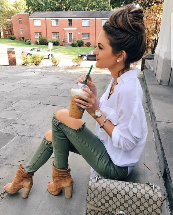 - Белая рубашка. Пока еще нет таких морозов как зимой, носите осенью классическую белую рубашку. Сочетать белую рубашку можно как с классической одеждой в виде юбок и черных брюк, так и с повседневной в виде джинсов или оригинальных шортов.