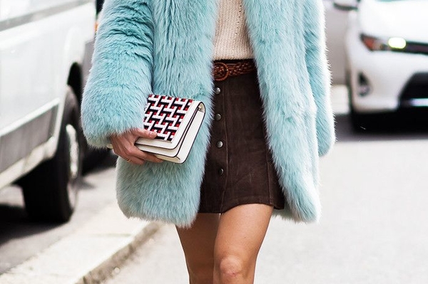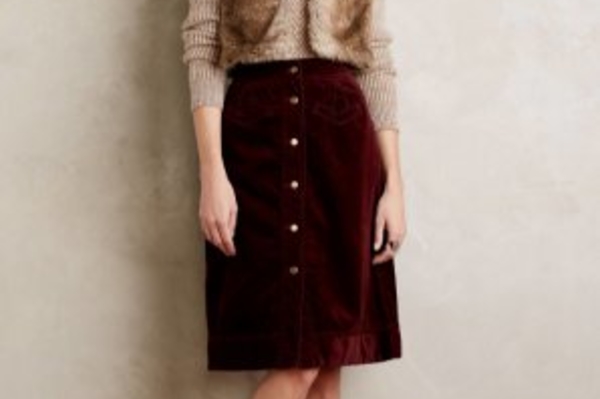 Вельветовую юбку носите с высокими сапогами, полушубком из искусственного меха или бомбером из денима.