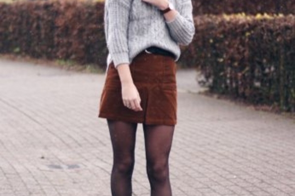 Вельвет отлично сочетается со свитерами, платьями и джинсами. Что касается обуви, смело выбирайте ботильоны на платформе, туфли на массивном каблуке или кеды.