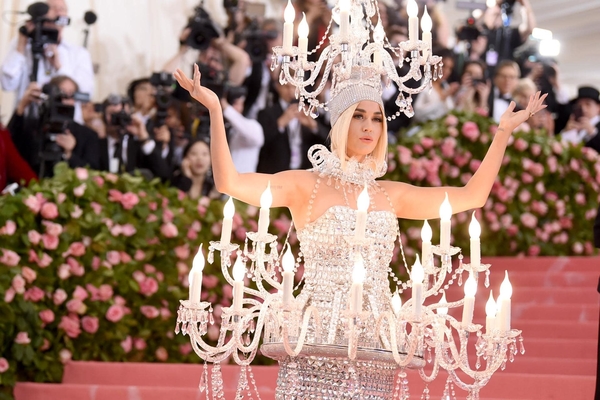 На последнем торжестве, посвященному роскошеству моды, супруга Орландо Блума переплюнула даже образ Джареда Лето с собственной головой, служащей актеру и певцу стильным аксессуаром. Тему гротеска и театральности Кэтти Перри решила воплотить абсолютно прямолинейно, нарядившись в серебристое мини с огромными люстрами со свечами на голове. На афтепати мероприятия певица поразила всех гостей еще больше, переодевшись в огромный-бургер, воплотив все мыслимые и немыслимые ассоциации с “кэмпом”.