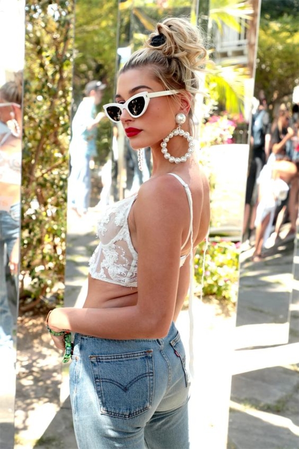 Темой кампейна стал подводный мир: Хейли продемонстрировала крупные украшения в виде морских звезд, ракушек и кораллов, а также сумку La Medusa из новой весенне-летней коллекции Versace 2021. Кроме аксессуаров, образ звезды состоял из разноцветного топа, украшенного кристаллами. И только из него. Чистейшая провокация на максимум!