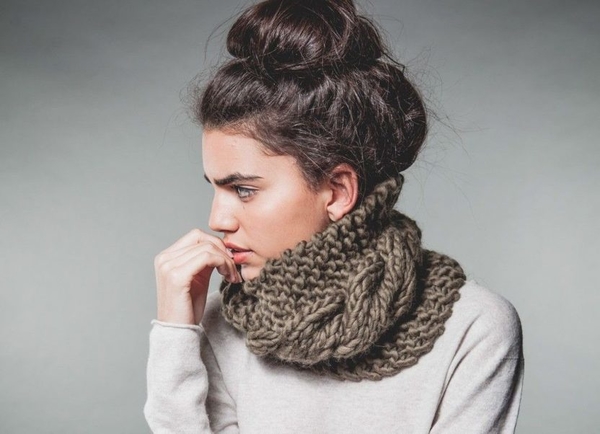 Совсем недавно снуд был самым ярким и любимым аксессуаром у женщин. К сожалению, мода слишком капризна и больше не признает практичный и теплый снуд. Модной альтернативой выступает объемный шарф, который красиво дополнит любую верхнюю одежду.