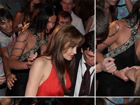 Поклонница, разгоряченная коктейлем из жары и алкоголя, сумела прорваться через несколько кордонов и оказаться в такой близости от суперзвезды, какой довольствуется разве что Брэд Питт. В одну секунду девушка впилась в руку Энжи, которую не сразу удалось отцепить даже опытным бодигардам, сопровождавшим актрису.