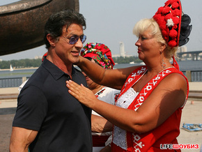 В украинскую столицу Сталонне вместе с коллегами - голливудскими красавчиками Джейсоном Стетхемом и Дольфом Лунгреном - звездный десант прилетел на премьеру блокбастера "Неудержимые".