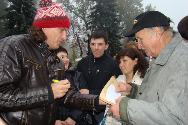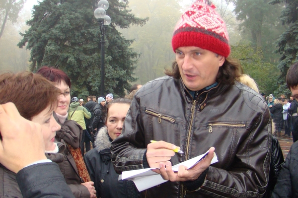 Люди плотным кольцом обступили рок-музыканта и делились с ним не только мыслями по поводу нового решения президента Украины, но и всеми жизненными проблемами, видя в нем своего человека.
