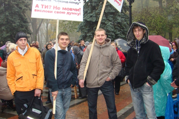 "Как известно, в Украине почти нет среднего класса. Есть либо очень богатые, либо очень бедные люди. Так вот для тех, кто не дотягивает даже к среднему прожиточному минимуму, секонд-хенды были своеобразной палочкой – выручалочкой. А где еще одеваться простому работяге с окраин спальных районов?" - Поддерживал дух протестующих Кузьма.