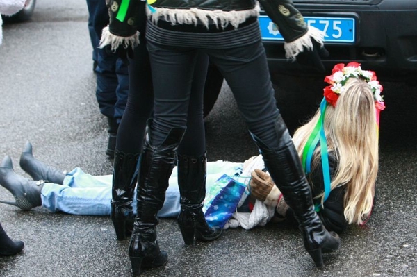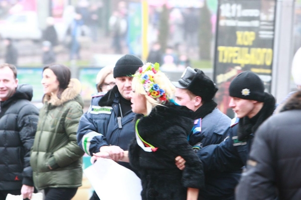 Напомним, что полностью одетые активистки с плакатами Free hugs обнимались на центральной площади Киева. Однако, милиционеры мотивировали задержание фразой: "Что вы ходите большой компанией?" Также служители закона инкриминировали Инне Шевченко ношение слишком короткой юбки. Не обнаружив в одежде активистки достаточного повода для задержания, милиционеры обратились за инструкциями к неизвестному абоненту. Использовав подсказку звонок другу, служители закона исправили формулировку, поэтому официальным поводом для задержания стала 185 статья АКУ (нарушение порядка проведения акций).