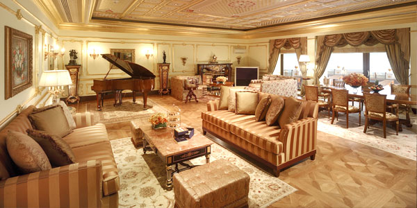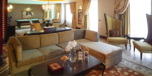 Для артиста подготовили два трехкомнатных номера в одном здании. Кроме спален с кроватями королевского размера и гостиных, украшенных золотом и парчой, в домике есть свой турецкий хамам. А обслуживает резиденцию общей площадью 340 кв. м. персональный дворецкий и две горничные.