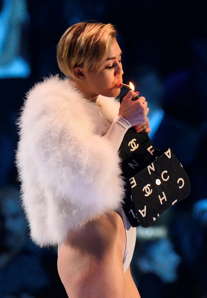 Напомним, инцидент произошел во время вручения наград MTV Europe Music Awards в Амстердаме. Тогда Сайрус вышла на сцену, чтобы получить награду за самый лучший клип, которым стал ее ролик на песню Wrecking Ball. Получив приз, певица достала из сумочки сигарету, похожую на самокрутку с марихуаной, и сделала несколько затяжек.