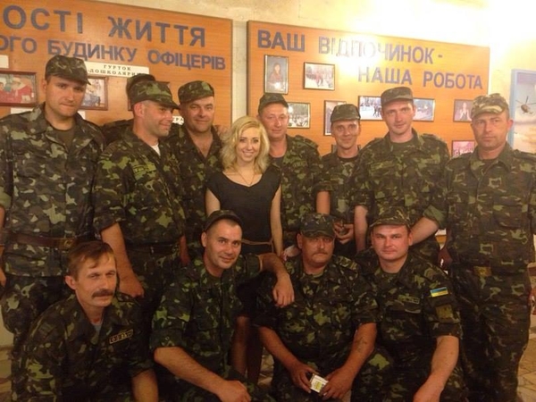 Певица Тоня Матвиенко также приобщилась к такому делу. Артистка вместе с Арсеном Мирзояном выступили перед военными, которые должны отправиться в зону АТО (антитеррористическая операция, – прим.ред.)