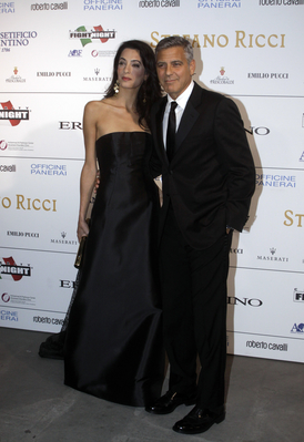 Свадьба американского актера Джорджа Клуни и юристки Амаль Аламуддин не за горами и пара больше не скрывает свои отношения. Ранее в прессе появлялись только папарацци фото, а теперь влюбленные посетили Celebrity Fight Night во Флоренции, Италия.