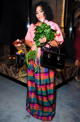 Жена Потапа блистала вся в красном, а хозяин ресторана BAO, в котором проходила вечеринка, Эктор Хименес-Браво - в голубом.
