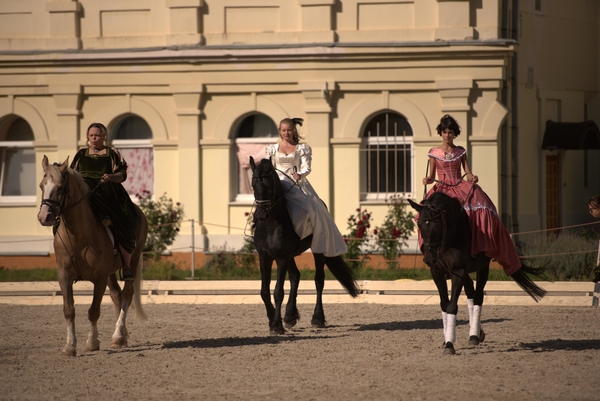 Я каталась только раз у нас в Одессе на Дерибасовской за 200 гривен. Но я тогда сидела на лошади нормально. А здесь нам пришлось ехать с сомкнутыми ногами на одну сторону. Короче говоря, мы были профессиональными панянками на лошадях.