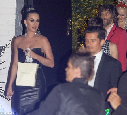 Кэти Перри провела вечер в компании Орландо Блума на благотворительном мероприятии в Лос-Анджелесе, США. Судя по фотографиям папарацци, девушка хорошо повеселилась на тусовке, так как наутро предпочла скрыться от журналистов за темными стеклами солнцезащитных очков.