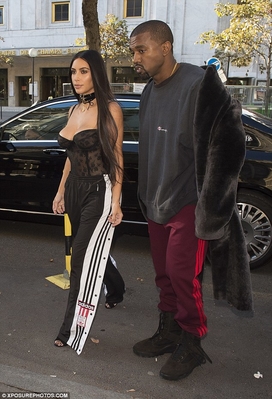 35-летняя Ким Кардашян и ее муж Канье Уэст были замечены на шоппинге в Париже, Франция. Женщина удивила своим странным нарядом: для выхода в свет она выбрала черное кружевное боди и спортивные штаны, которые дополнила босоножками на каблуке.