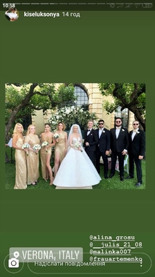Сама Алина Гросу пока не спешить выкладывать в Сеть снимки с церемонии. Но в разделе Stories невеста распространила публикации гостей. Судя по одному из кадров, свадьбу также посетила ведущая программы “Світське життя“ Катя Осадчая.