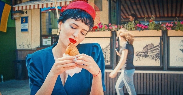 Певица Даша Астафьева в образе из 60-х сняла видео у столичного киоска с выпечкой.