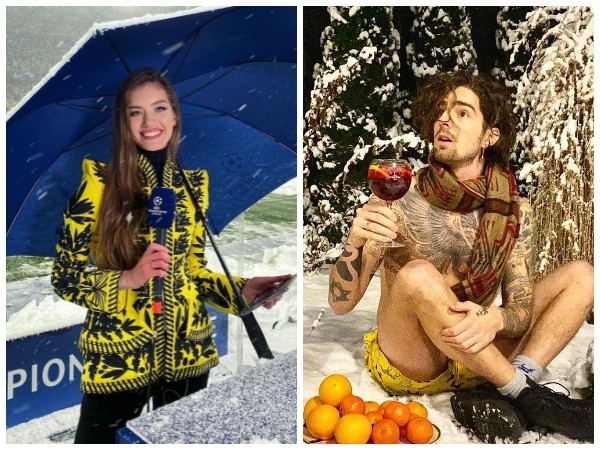 Александра Кучеренко показала, как в снежную погоду провела прямое включение на футбольном поле.