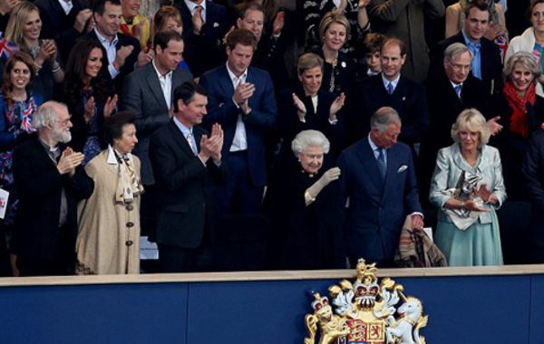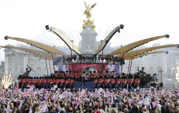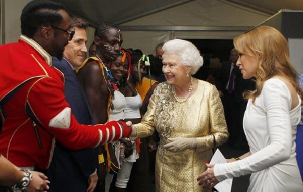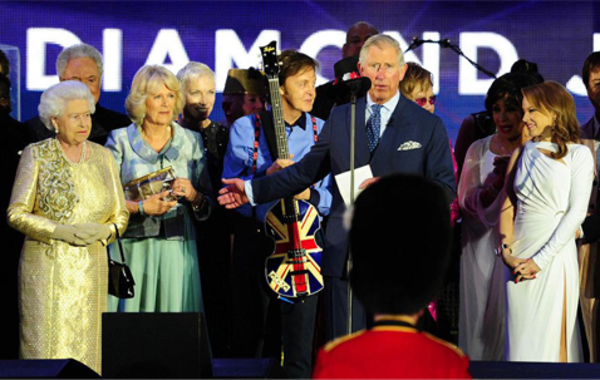 Поздравить Елизавету ІІ со сцены, установленной напротив Букингемского дворца, приехали Пол Маккартни, Кайли Миноуг, Элтон Джон, Стиви Уандер, Робби Уильямс, рэпер Will.i.am и другие звезды. Зажигательное шоу в честь юбилея правления королевы смотрели все члены знатной семьи, в том числе принц Уильям и герцогиня Кэмбриджская Кэйт Миддлтон. Вместе с братом принца, Гарри, они весело размахивали британскими флагами и подпевали именитым звездам.