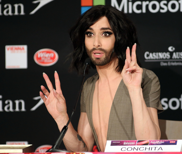 Победитель Евровидения 2014 бородатый трансвестит из Австрии Кончита Вурст надел на пресс-конференцию перед вторым полуфиналом конкурса платье с глубоким декольте, которое продемонстрировало, что артист все же больше мужчина, нежели женщина. Смотри пикантные снимки на Ivona: