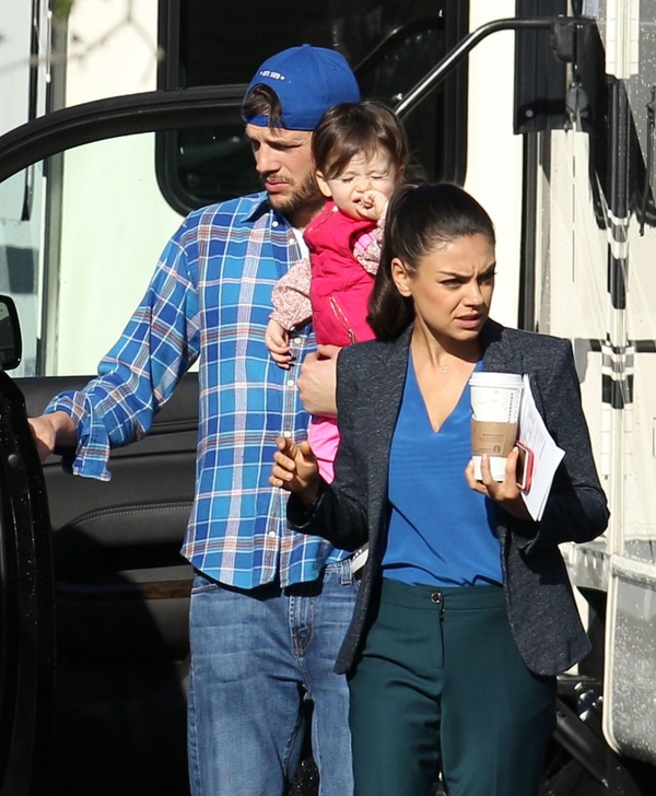 37-летний Эштон вместе с 15-месячной дочкой Уайатт прибыл на съемки комедии Плохие мамочки, где 32-летняя Мила играет главную роль.