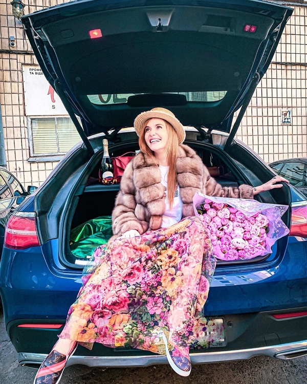 Незадолго до этого Каминская показывала в Сети, как собирается к куму на свадьбу - она несла огромный букет роз - и по дороге успела примерить несколько шуб.