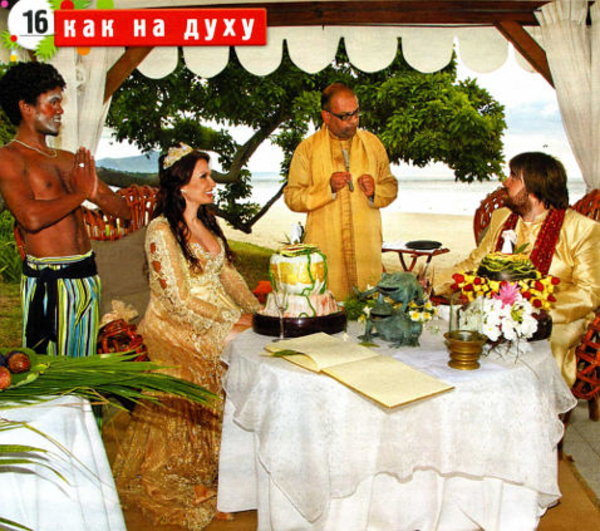 "Мы с Элей, стоя в арке, украшенной цветами, укололи о кактус наши безымянные пальцы. А пастор соединил мою руку и руку Эвелины пальмовыми листочками, символически смешав нашу кровь, – и только после этого объявил нас мужем и женой", – рассказал журналу Теленеделя Александр Семин.